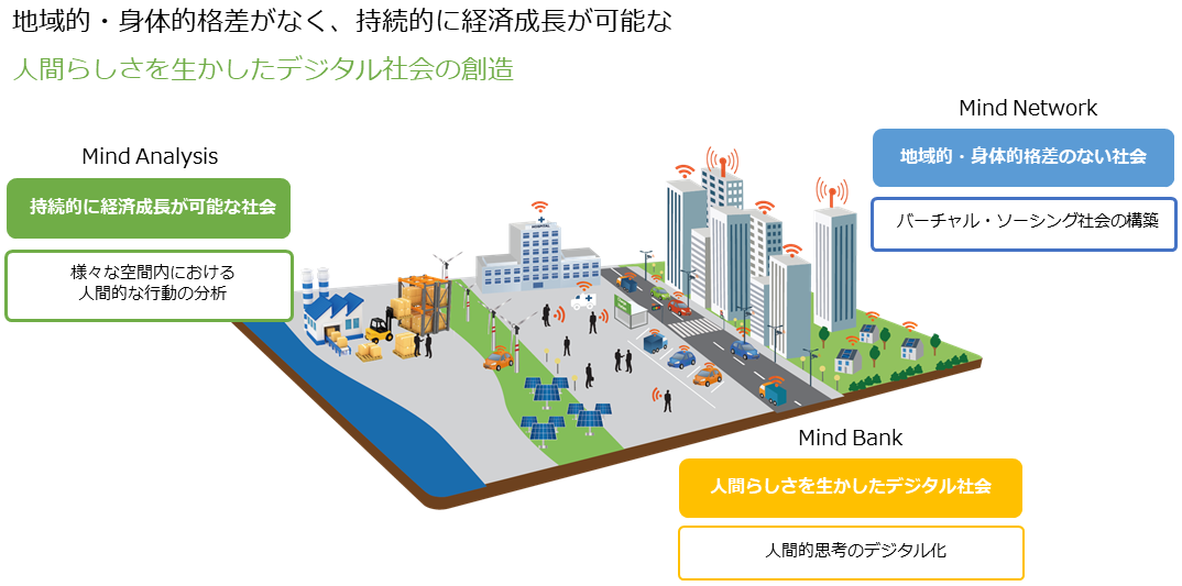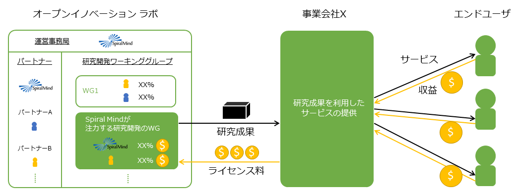 SpiralMindは“人間らしさを生かしたデジタル社会の創造” をコンセプトに、 Mixed Reality技術やAI技術を応用した未来のワークスタイルを主な研究領域とするオープンイノベーションラボを運営しています。そのコンセプトに共感した様々な分野のパートナーと共同で研究開発を行い、未来のライフスタイルを創造しています。